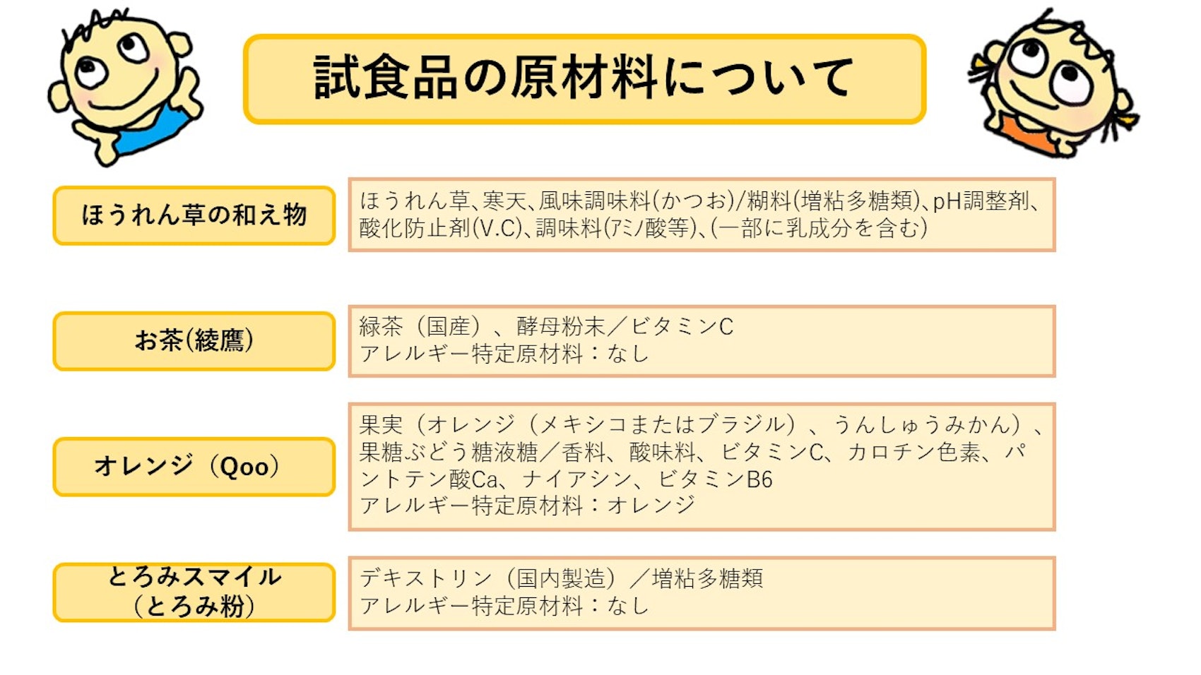 講義で介護食品の試食がありますので、下記の原材料をご確認のうえ、アレルギーがある場合はご連絡お願いいたします。